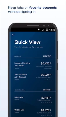 - Customize your home screen with a snapshot of checking, saving, investment and loan account balances