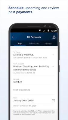 - Make one-time or scheduled bill payments