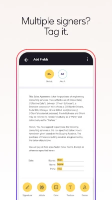 • Access to essential fields. Request signature, date, and name.