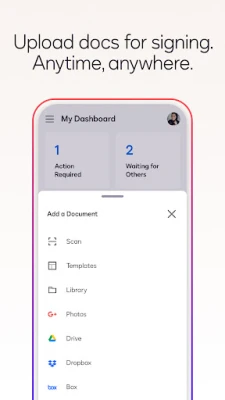 • Step 2: Upload documents easily via email, Google Drive, DropBox, Box, Evernote, Salesforce, or photo scanning.