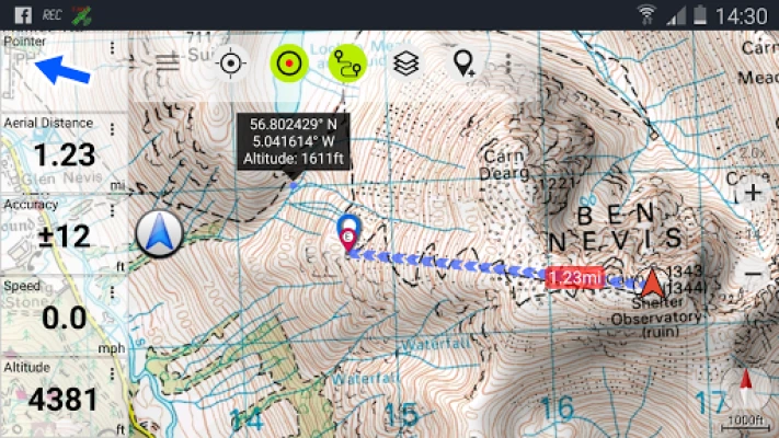 Available Pro features: (Pro features available via In App Purchase or come free when OS Explorer maps are purchased)