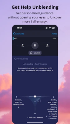 🌞Sunny will be with you every step of the way, so you never wander off or feel lost in the process. There are text, audio, and direct speaking guides in your native language that will help you through inner child work and shadow work, so you understand your parts better and create deeper relationships with them. In addition to AI-powered guidance, the app also provides smart guided meditations in audio, for those who prefer no AI included in their guidance.