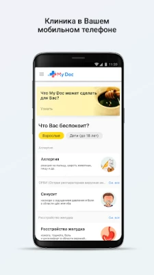 My Doc – удобный способ получить срочный совет по медицинским вопросам от первоклассных врачей муниципальных и частных клиник РФ. А так же записаться на прием к врачу.