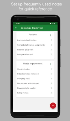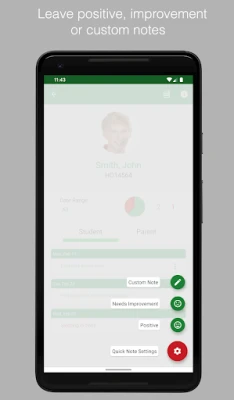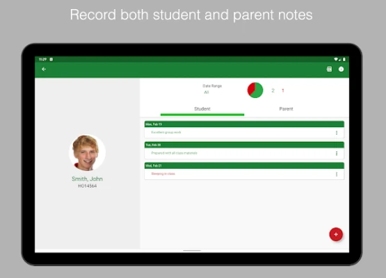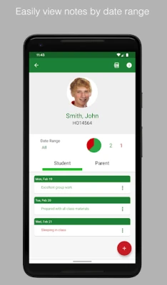 • Record both parent and student logs • Setup list of frequently used comments for easy access • Backup data to Dropbox or Drive • Generate PDF reports • Track positive and needs improvement notes