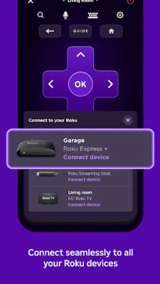 You must connect your phone or tablet to the same wireless network as your Roku device to use certain features of the mobile app. Some features require a compatible Roku device and may require logging into your Roku account.